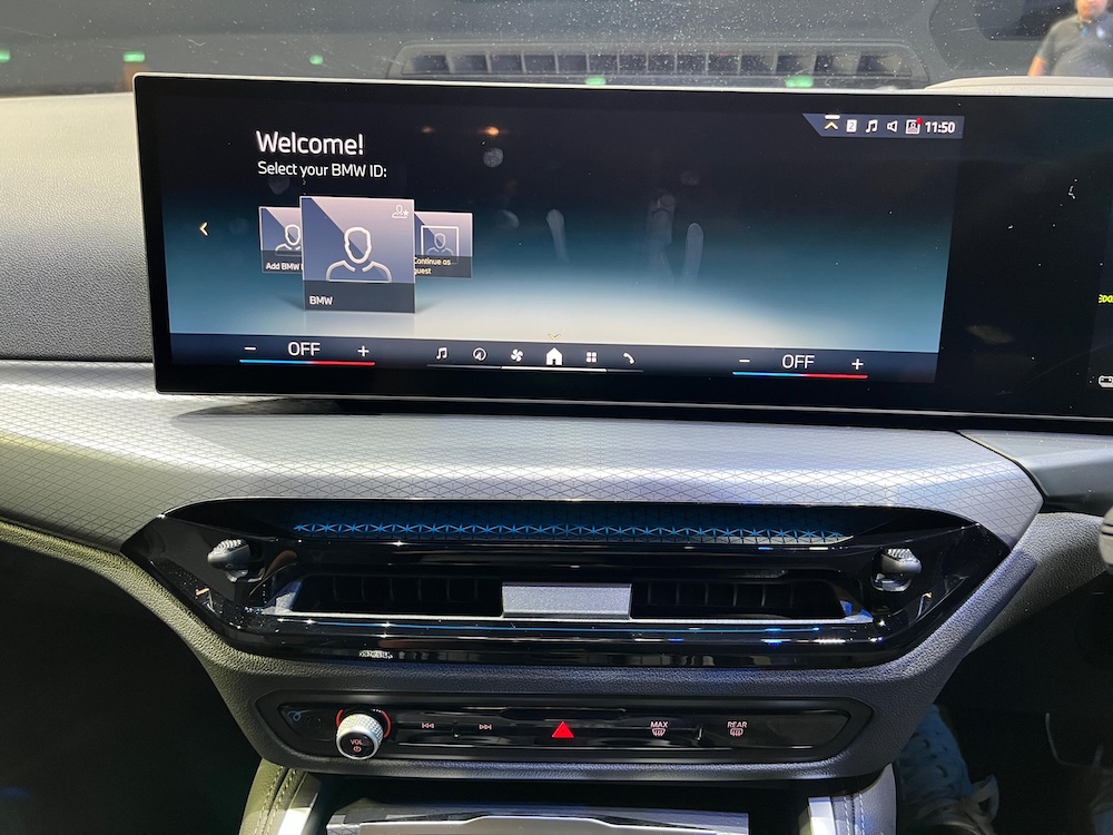 - Papan pemuka lengkung BMW berorientasikan pemandu menggabungkan dua unit skrin 12.3 inci dan 14.9 inci untuk pengalaman visual lancar.