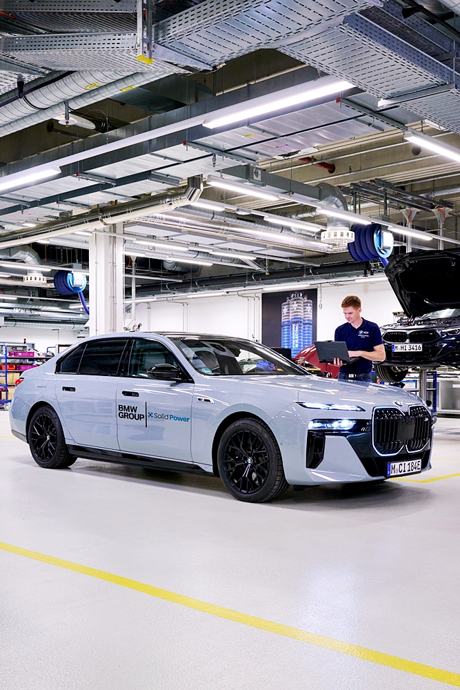 BMW Group dan Solid Power sedang menguji sel bateri pepejal (All-Solid-State Batteries, ASSB) dalam kenderaan ujian BMW i7 di Munich, Jerman. BMW Group menggunakan sel ASSB tulen format besar daripada Solid Power ke atas kereta ujian itu.
