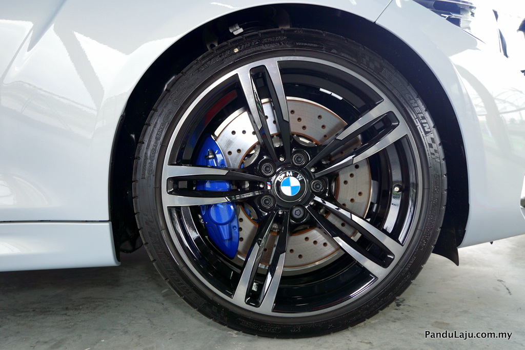 - Menggunakan set rim aloi ringan ‘M’ 19-inci dengan gaya double-spoke 437 M.