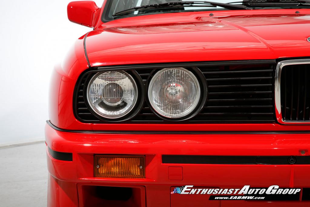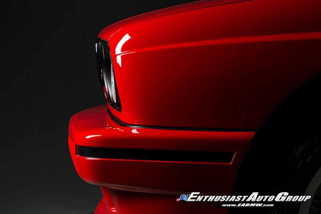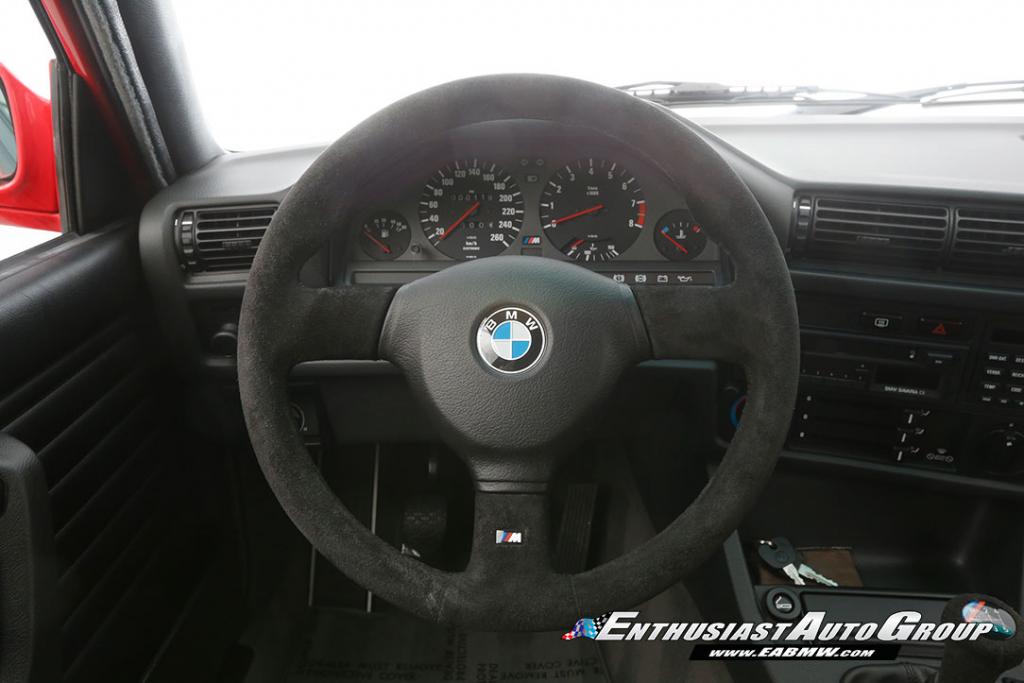 Kereta ini juga duduk 10mm lebih rendah berbanding M3 normal dengan rim jejari silang wana hitam bersaiz 16-inci. Di pasaran, selain warna Brilliant Red (merah), E30 M3 ini turut ditawarkan dalam warna Jet Black (hitam).