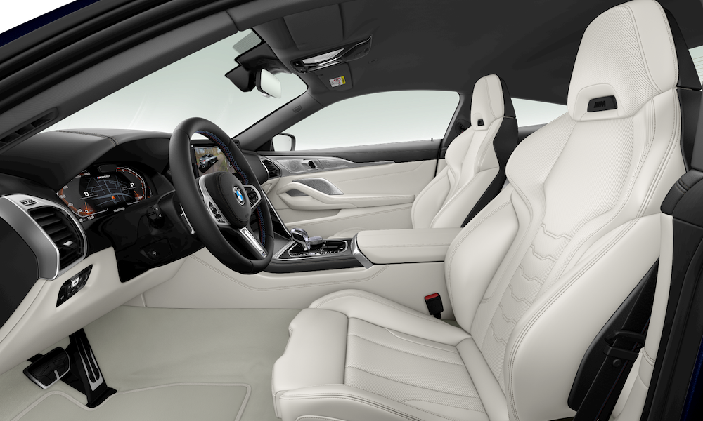 - Ruang dalaman khususnya upholsteri menampilkan BMW Individual Extended Leather Trim Merino. Ada pilihan warna Black, Cognac, Ivory White, Night Blue, Tartufo dan Fiona Red.