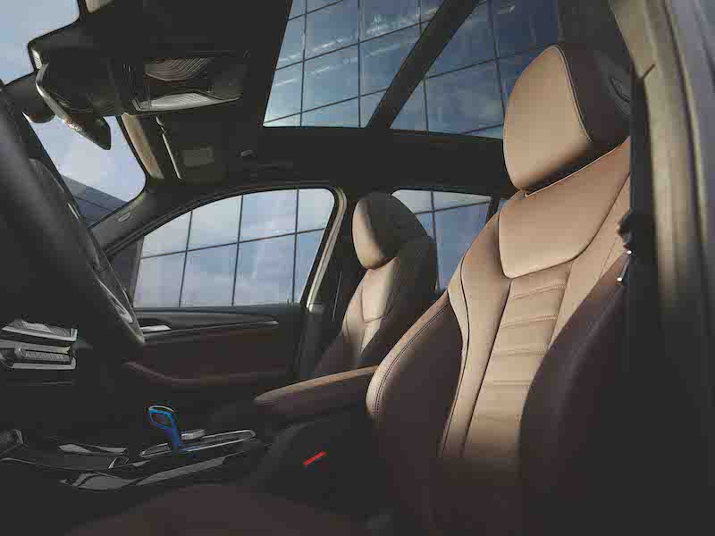 - Menawarkan BMW iX3 M Sport Impressive dengan warna M Carbon Black Metallic dengan kemasan kulit Vernasca (warna coklat dan jahitan hitam).