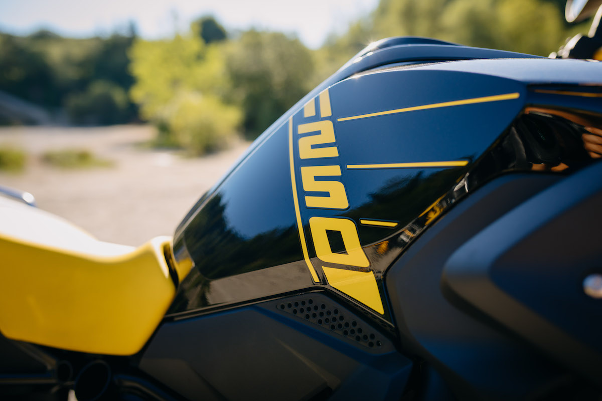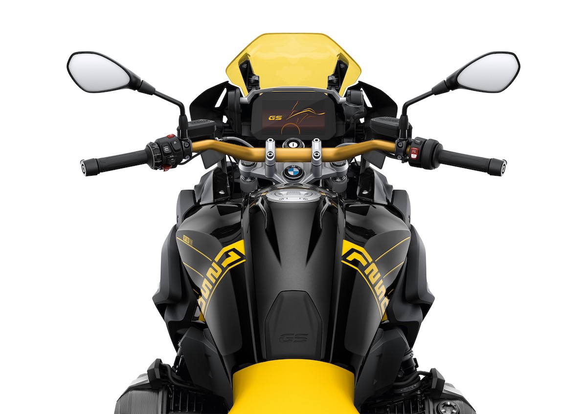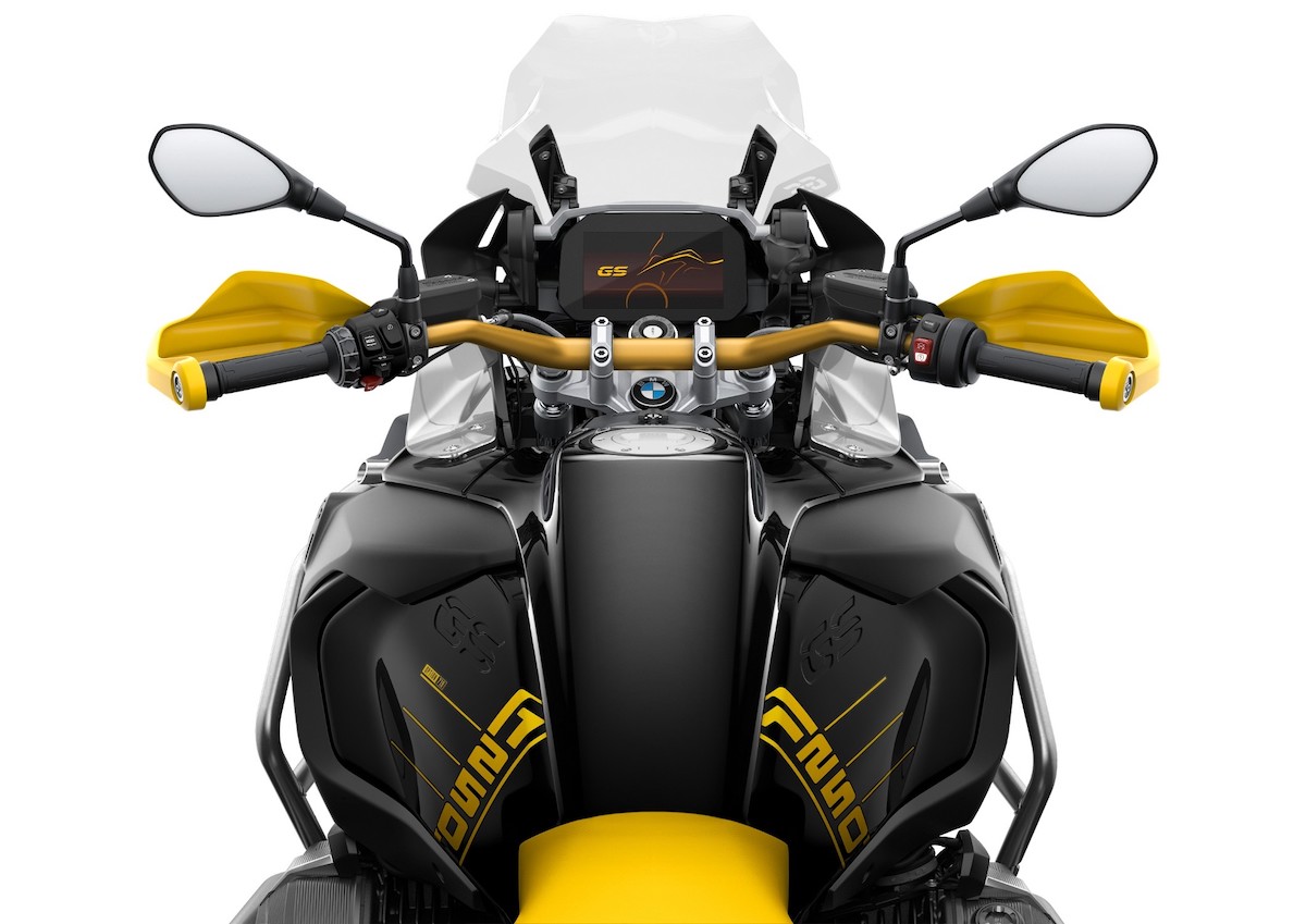 - Cat unik ’40 Years of GS’ dengan kombinasi warna Blackstorm Metallic dan kuning yang diilhamkan daripada R100GS Bumble Bee keluaran 1988.