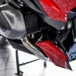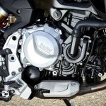 Ia juga menawarkan tempoh pencucuhan 270º/450º untuk bunyi lebih gemuruh. Enjin 853cc meledakkan kuasa 77hp @ 7,500rpm dan tork 83Nm @ 6,000rpm dengan transmisi sirat malar aka constant mesh 6-kelajuan dengan pacuan sekunder sebelah kiri.