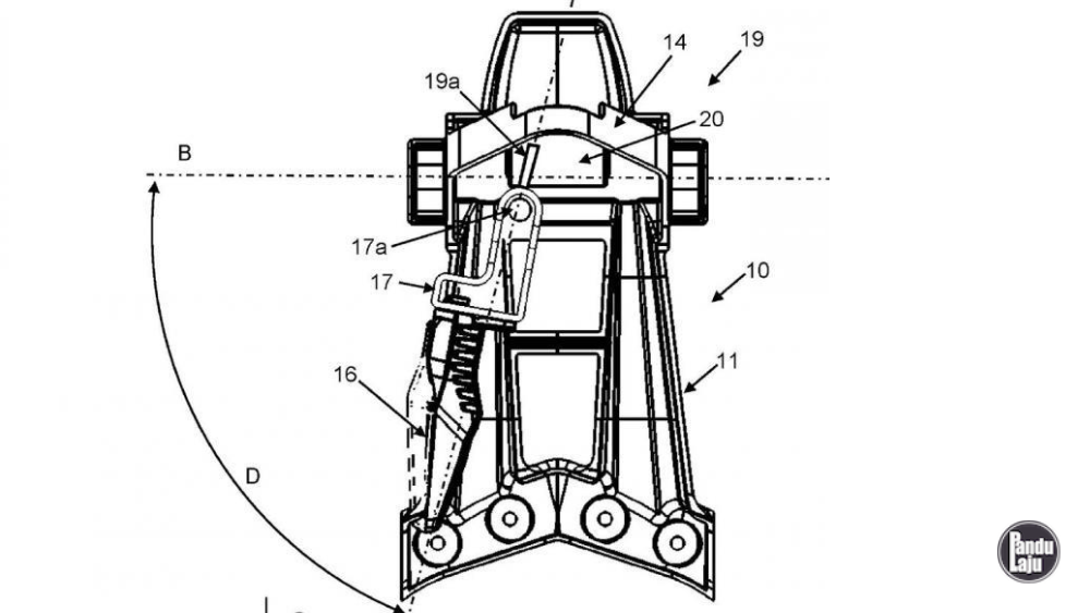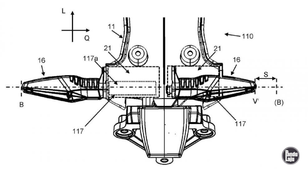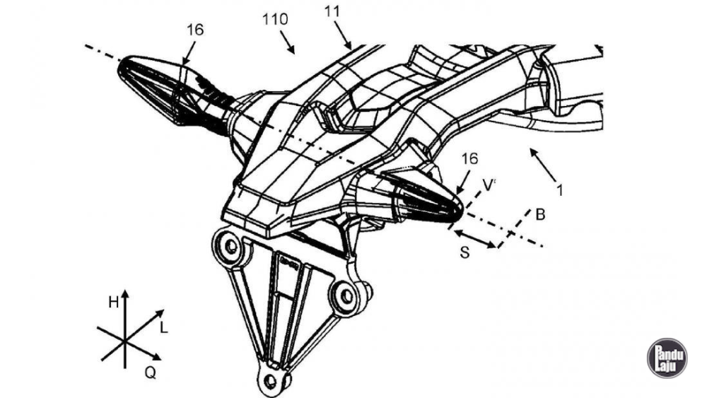 Paten pertama ialah lampu signal belok boleh lipat pada braket dengan pemegang nombor plat belakang mirip model superbike BMW S 1000 RR.