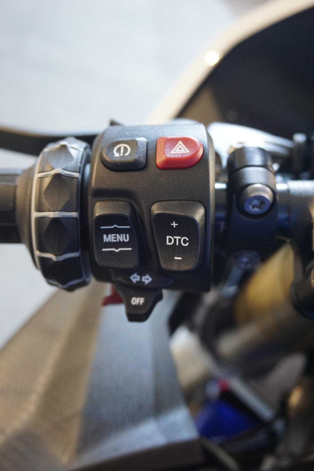 Ciri Kawalan Luncur juga disediakan untuk memastikan permulaan sempurna di litar dengan Pengehad Laluan Pit. Di samping itu, skrin TFT 6.5 inci memudahkan bacaan penunggang walau dalam apa jua keadaan. Ia dihubungkan dengan Multi Controller pada panel bar hendal di sebelah kiri dan ia boleh dioperasikan segera, selamat dan mudah.