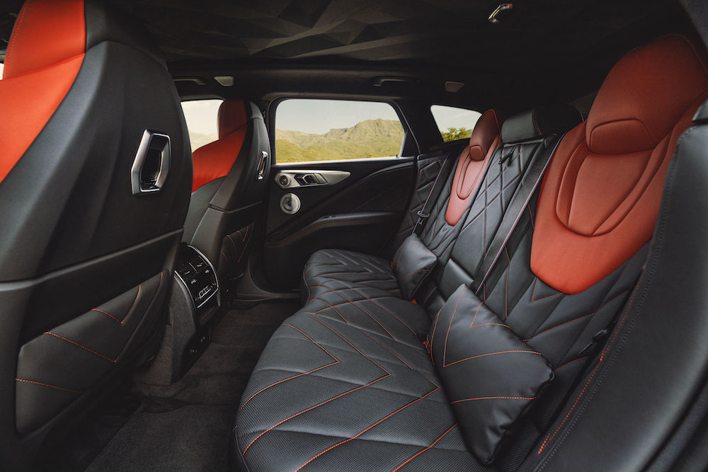 Motif dwi-tona menawan juga dapat dilihat dalam kabin BMW XM Label Red (2023), seperti upholsteri mewah yang menampilkan tekstur bentuk berlian dengan sulaman benang merah. Aksen merah turut dilihat pada papan pemuka, trim pintu, dan panel instrumen.