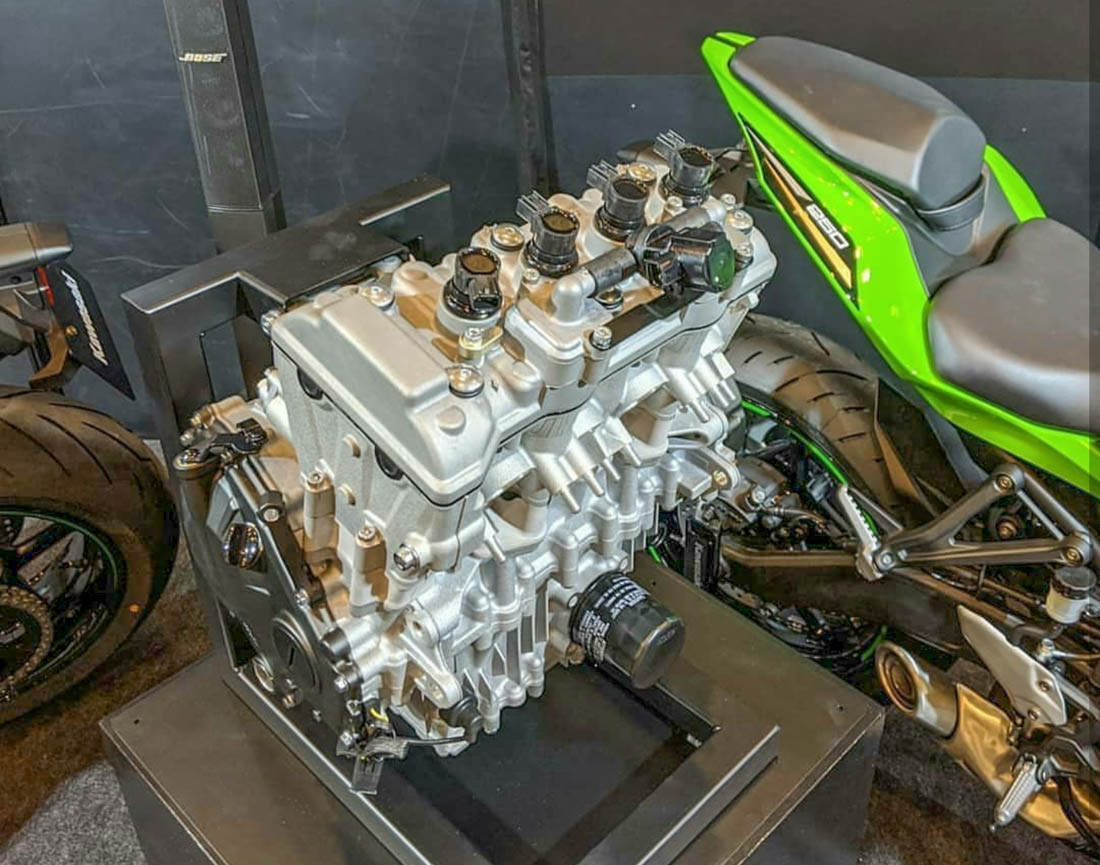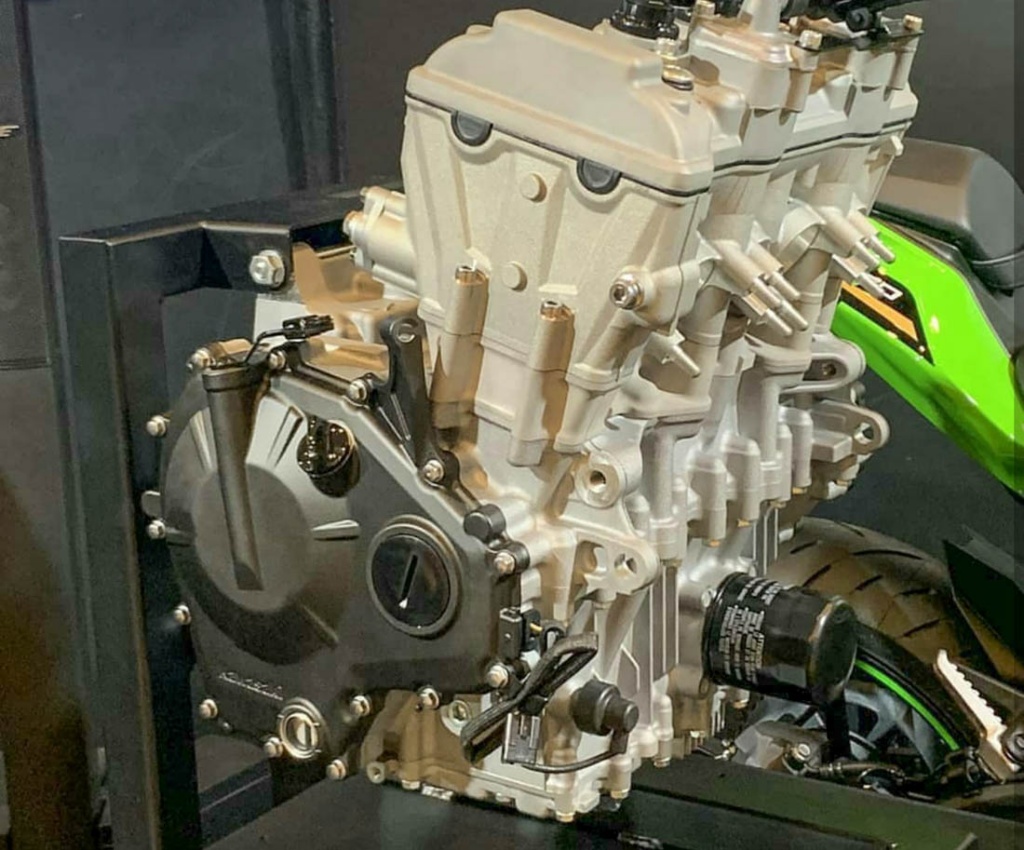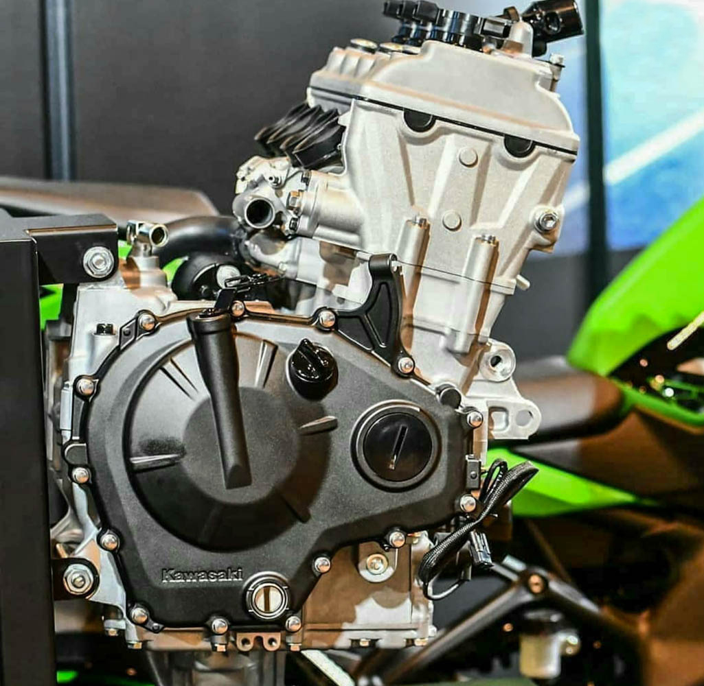 Juga kelihatan unit penapis minyak di depan yang sedikit condong ke kiri. Memandangkan ini enjin baharu, ramai peminat Kawasaki tertanya-tenya dengan prestasi sebenar model tersebut. Bunyi deruman ekzos saja sudah cukup menggiurkan, manakala kelajuan maksimum disahkan lebih berkuasa berbanding enjin 2-silinder kerana memiliki keluk rpm lebih tinggi.