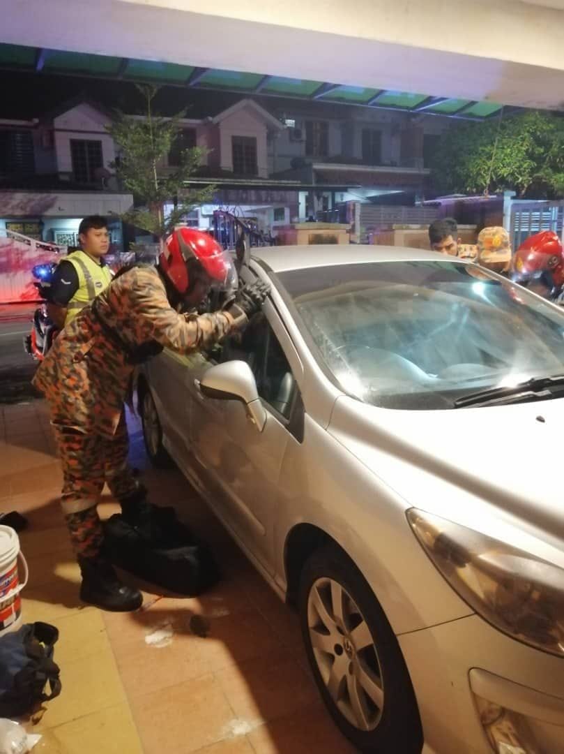“Anggota Bomba bertindak membuka pintu kereta dengan menggunakan peralatan khas dan mangsa berjaya diselamatkan.