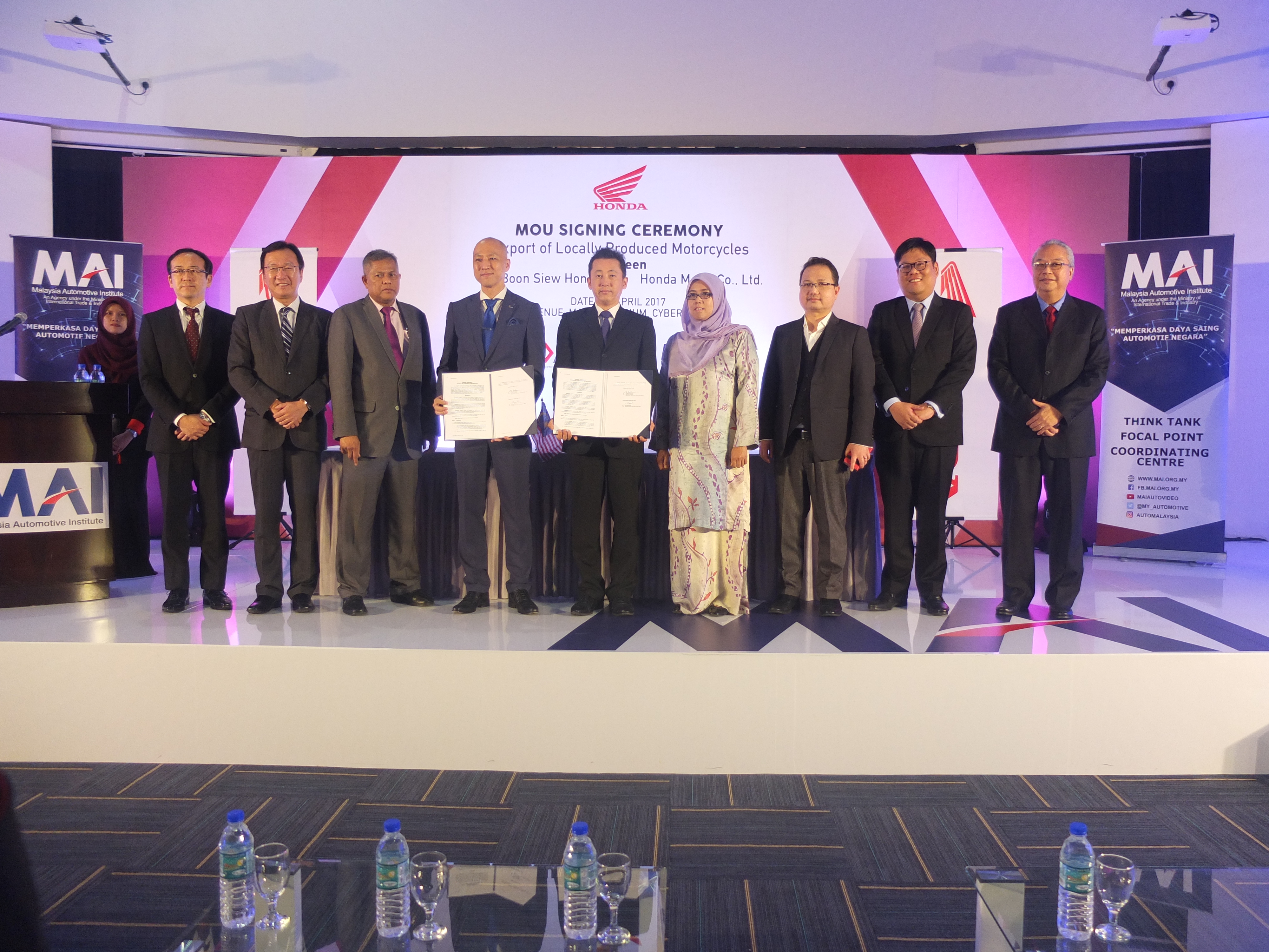 Majlis itu turut disaksikan Kementerian Perdagangan Antarabangsa dan Industri (MITI), Lembaga Pembangunan Pelaburan Malaysia (MIDA) dan Institut Automotif Malaysia (MAI) yang di MAI, Cyberjaya.
