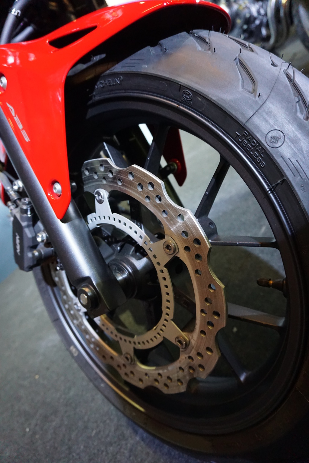 - Didatangkan dengan saiz tayar berbeza, versi F dan R, iaitu 110/80R19 (depan) dan 160/60R17 (belakang)