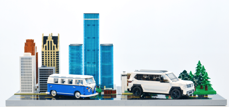 Set diorama LEGO itu dibina sendiri secara kustom membabitkan lebih 20,000 bongkah yang turut memuatkan dua model skala VW iaitu kenderaan utiliti sukan (SUV) Atlas dan bas mini Microbus original. Turut di-LEGO-kan ialah pemandangan bandar raya Detroit dengan beberapa bangunan terkenal seperti Pusat Renaissance dalam set diorama bersaiz sepanjang dua kaki (60.96sm) dan lebar 3.5 kaki (107sm).