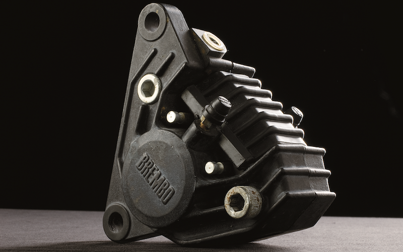Rekabentuk luaran G Sessanta diilhamkan daripada kaliper pertama Brembo pada 1972 (gambar atas, kiri). Kaliper bercahaya itu sesuai dipadankan dengan cakera brek cermin Brembo, Greentive (gambar kanan).