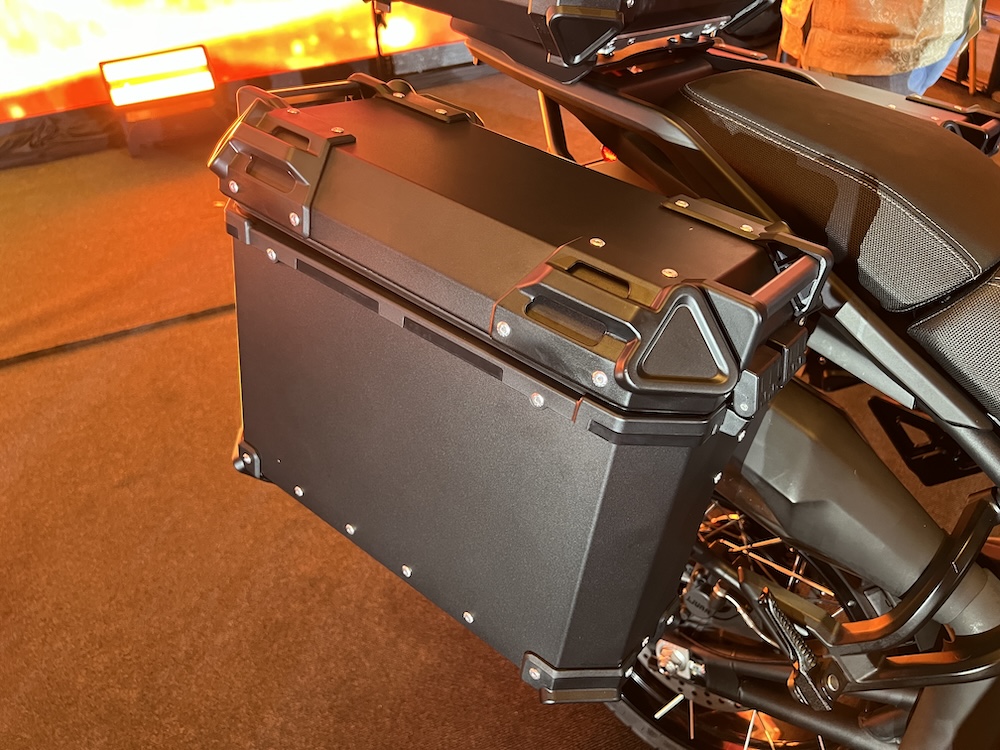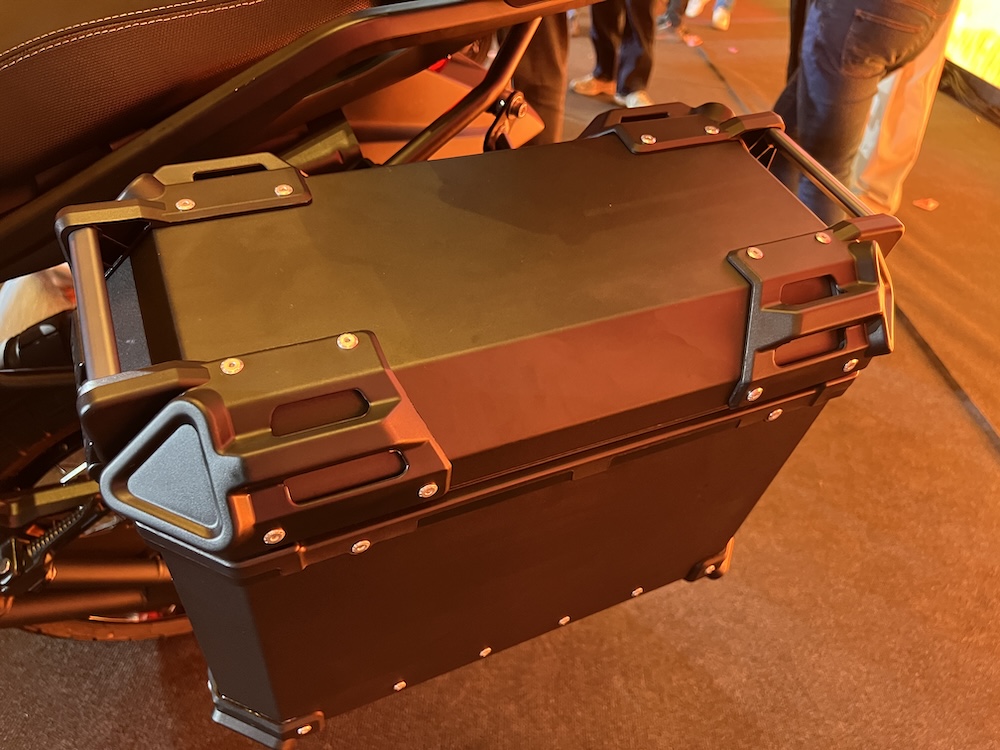 Ia turut dilengkapi tiga unit kotak simpanan (satu di bahagian atas dan dua di sisi), menjadikannya sesuai untuk kegunaan pengembaraan lasak dan perjalanan jarak jauh.