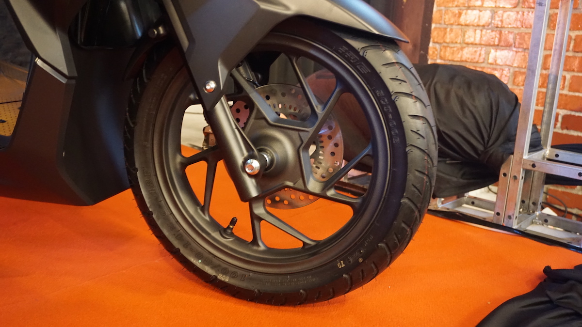- Dilengkapi Sistem Brek Anti-Kunci (ABS) pada brek depan. Rim 14 inci dengan tayar 100/80 (depan) dan 120/70 (belakang). Saiz tayar lebih besar untuk menambah baik aspek kestabilan tunggangan.