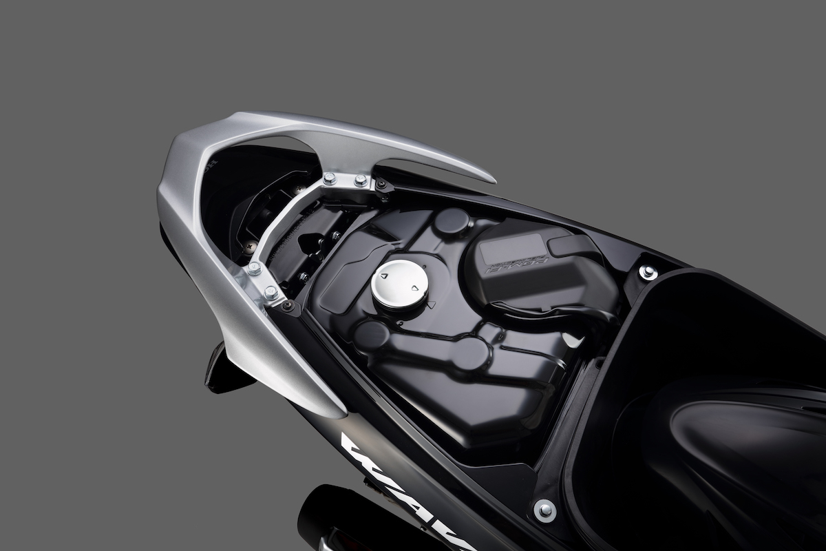 - Inilah satu-satunya kapcai dengan ruang simpanan bawah pelana terbesar di Malaysia, iaitu 18 liter untuk menyimpan barang peribadi dan kelengkapan lain.