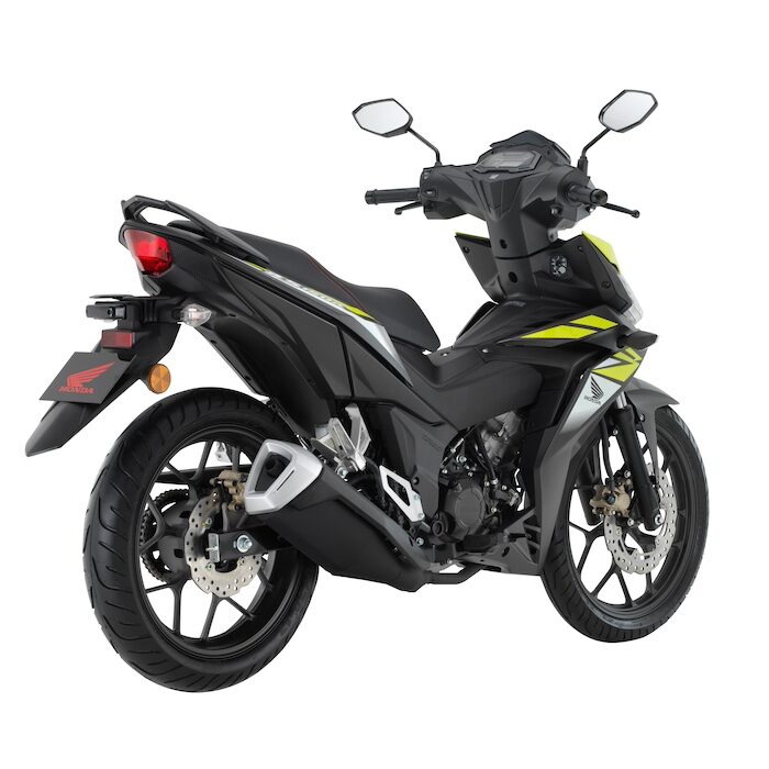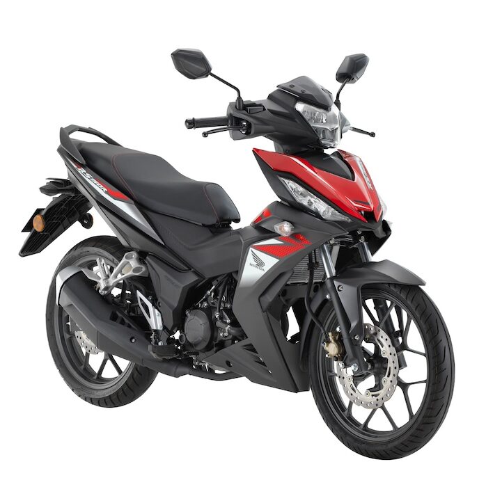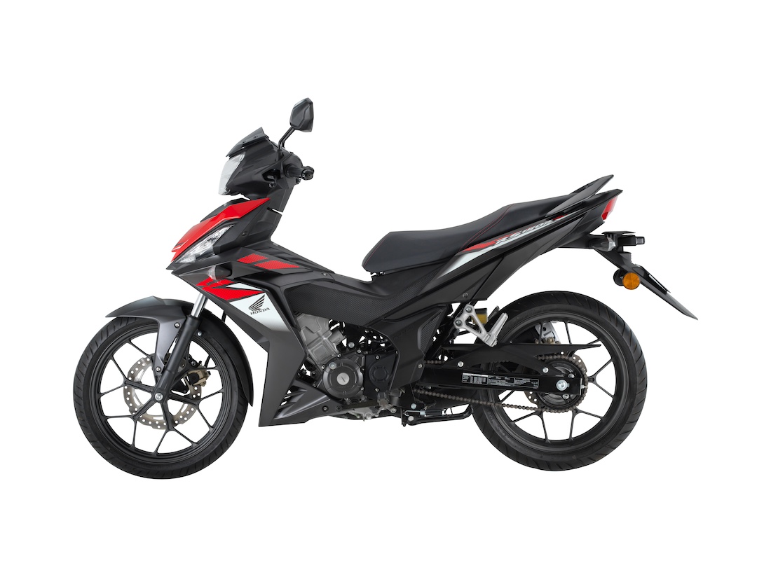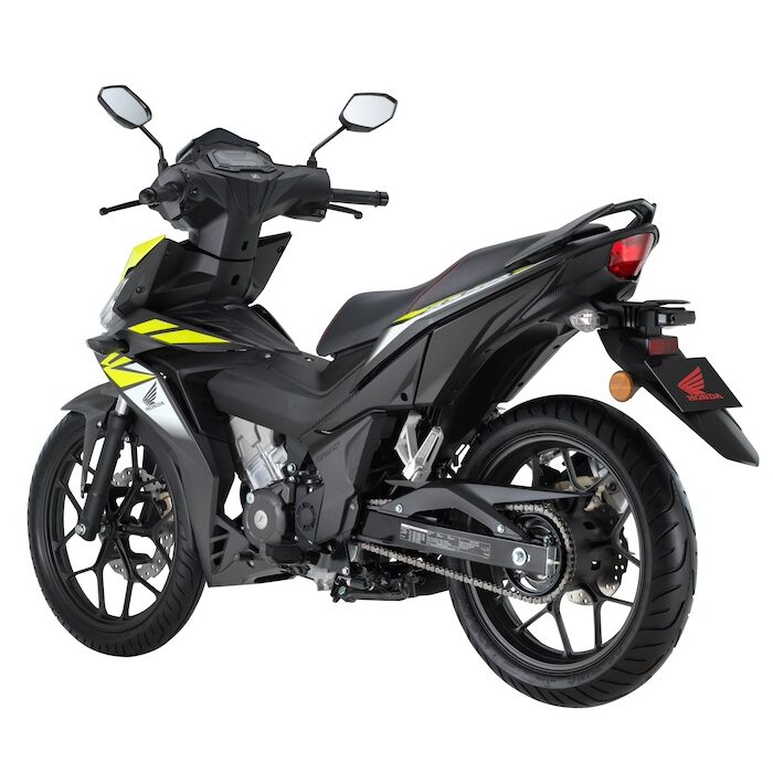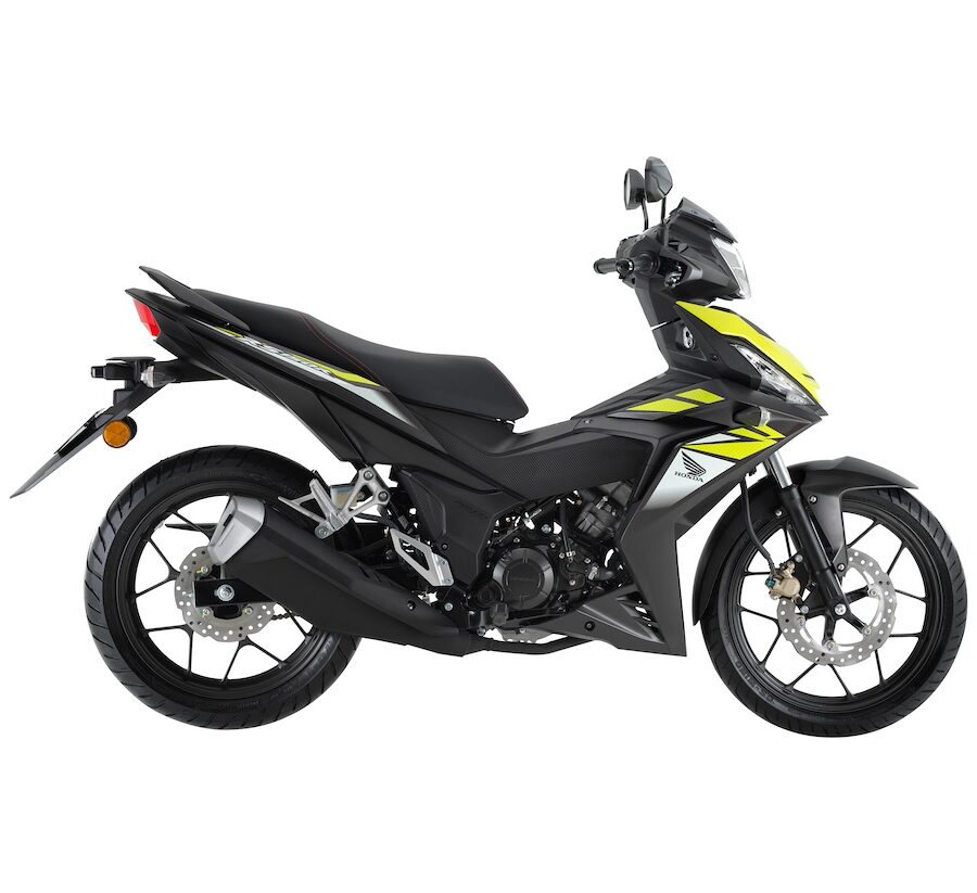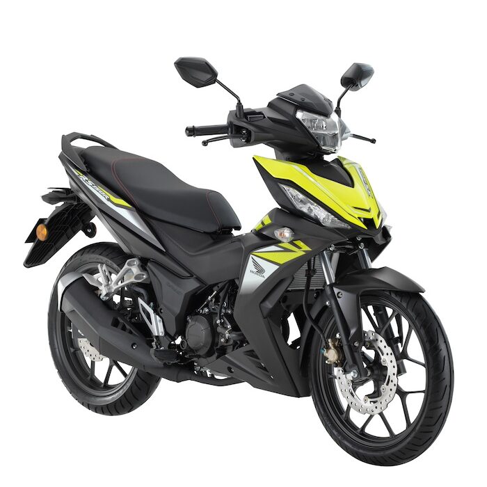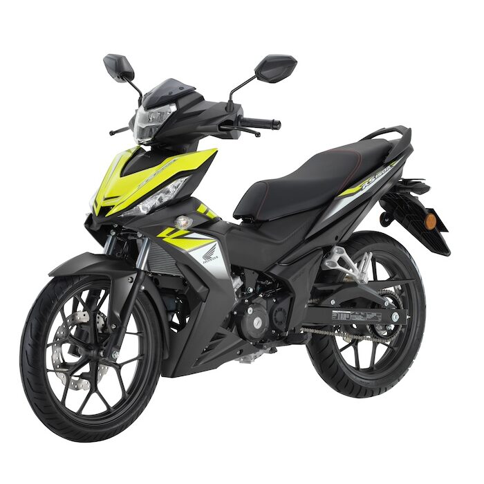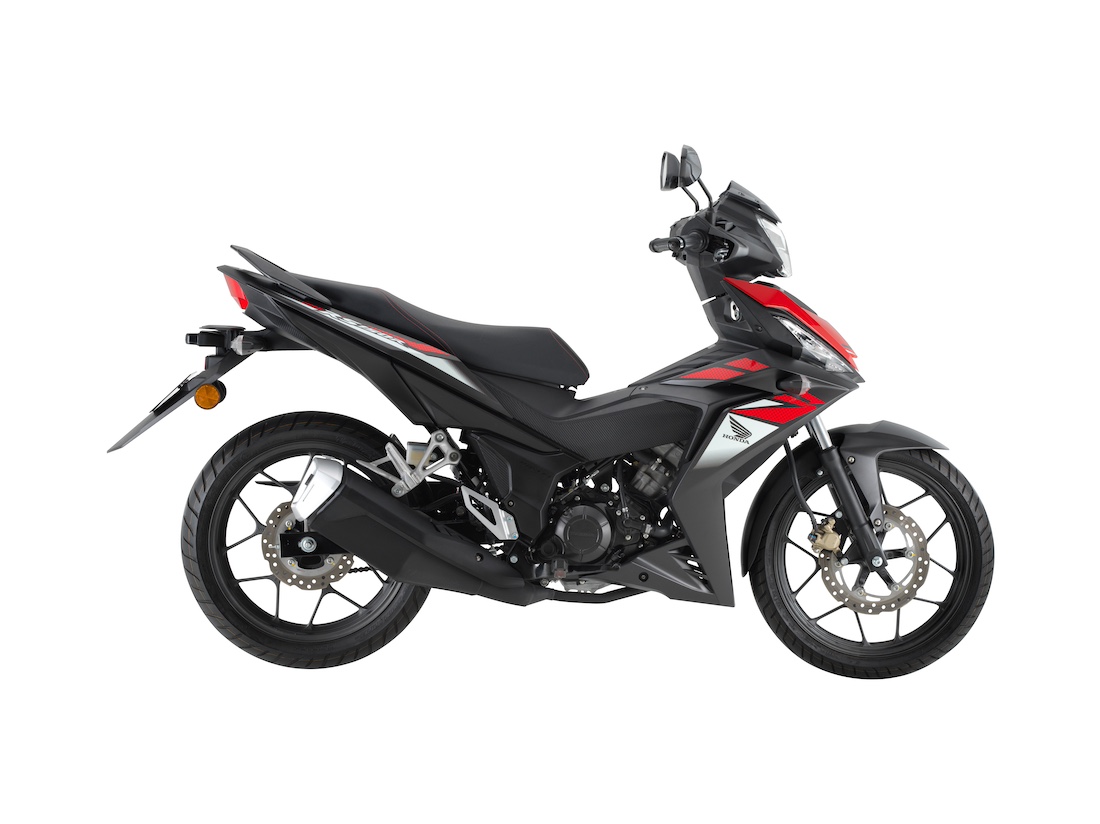 HITAM itu premium. Wakil pengedar rasmi motosikal Honda di Malaysia, Boon Siew Honda (BSH) memperkenalkan warna baharu untuk supermoped Honda RS150R (2024) dalam dua warna pilihan lebih gelap: Mat Grey & Yellow, dan Mat Grey & Red.