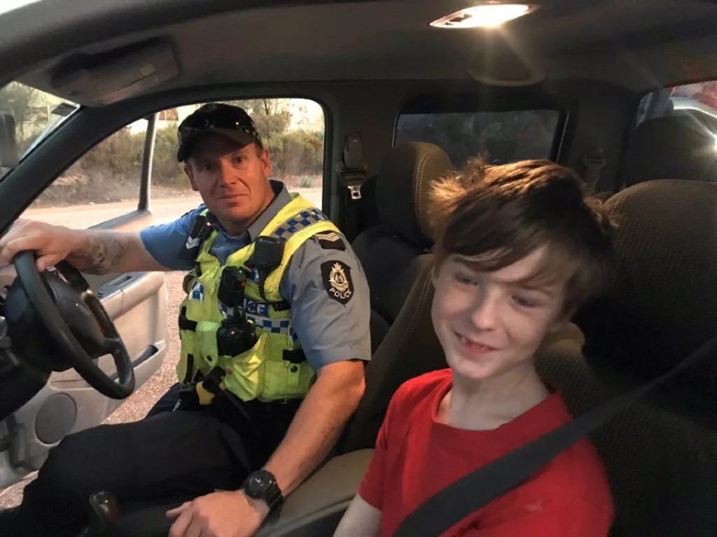 With the Help of DFES, Dalwallinu Officer S/C SMITH saved this 12 year old who was driving across paddocks to escape the fire 🔥 in Mogumber. He has been reunited with family and is safe and well #fb pic.twitter.com/zyrYCFgwSM