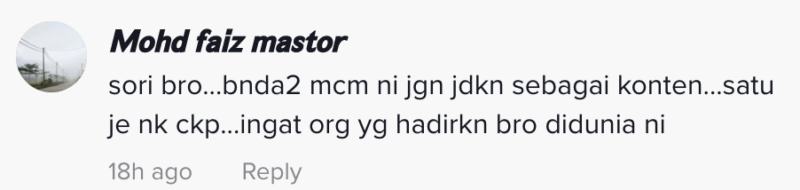 "Mungkin video itu saya tak habis cerita. Salah saya. Betul video itu adalah 'konten'. Ajim kawan saya Sengau melakonkan balik apa yang kita nampak dalam realiti masyarakat. Jadi apa yang saya buat memang ada orang normal cuba jadi OKU untuk dapat parkir.