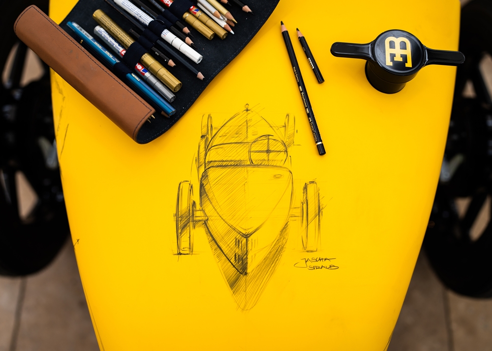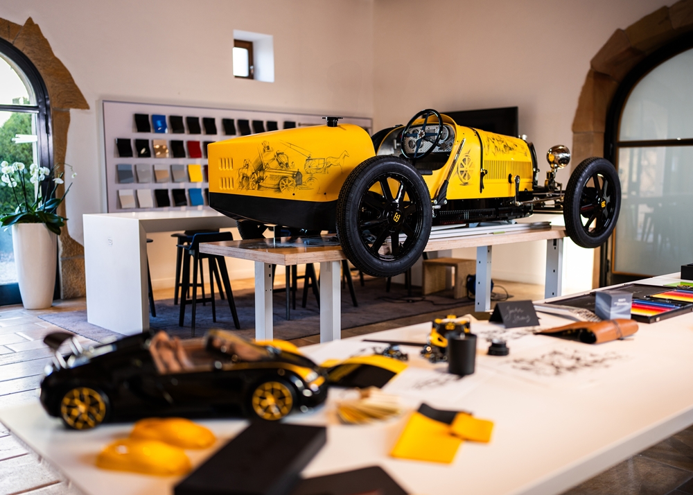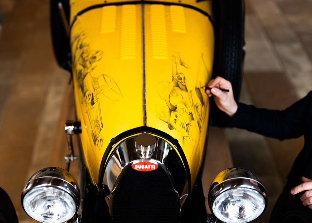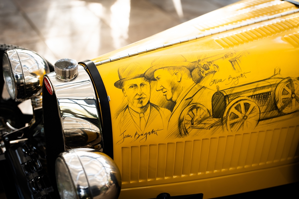 Straub turut menunjukkan bakat dengan melakar ibu pejabat Bugatti, Château Saint Jean dan Type 35 pada badan kereta yang dilapisi pelindung khas.