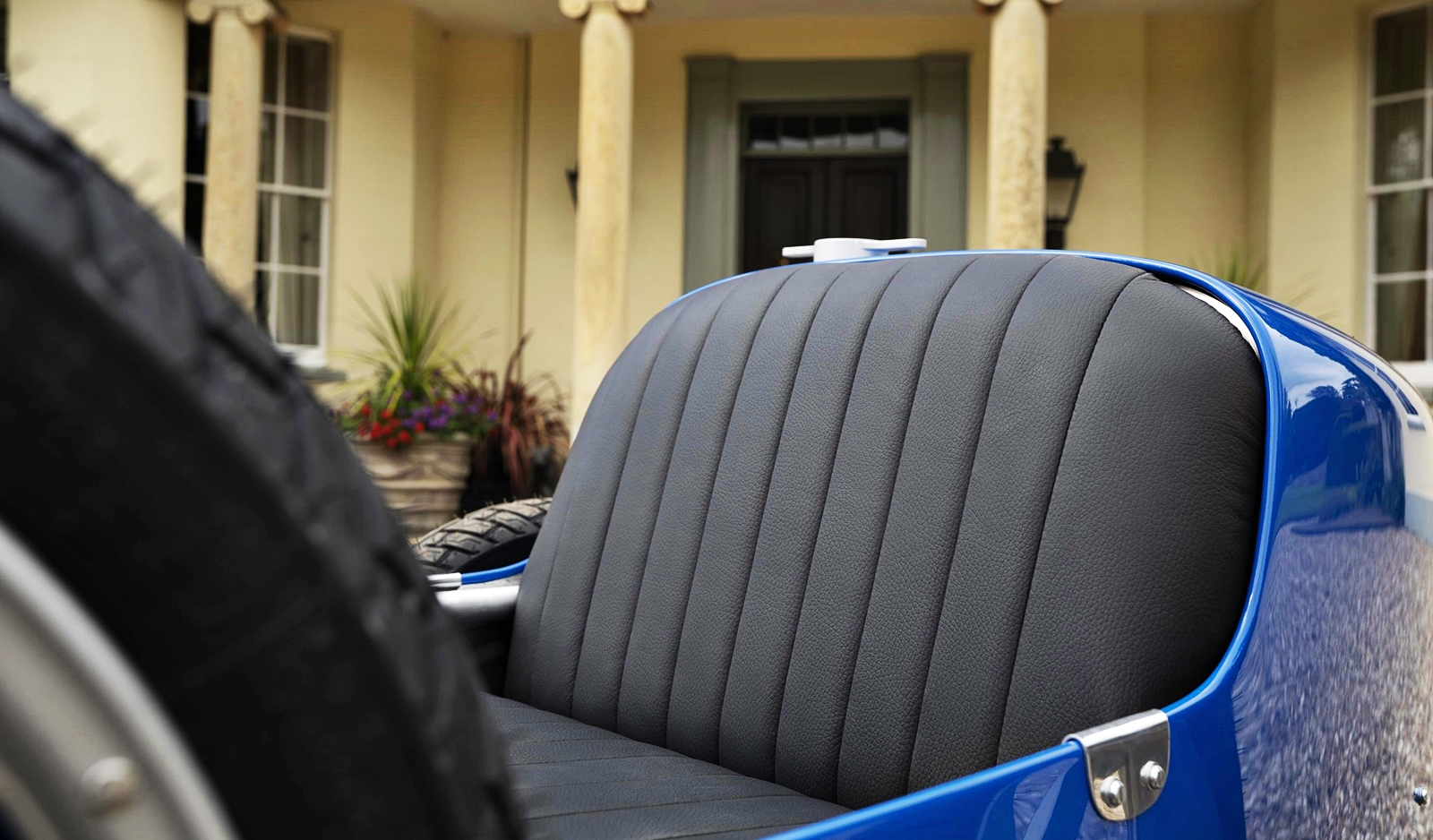 - Warna standard French Racing Blue dengan interior kulit hitam. Pembeli turut ditawarkan pilihan warna solid seperti Chiron.