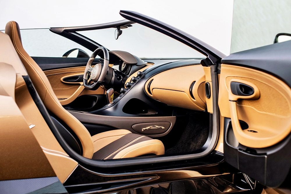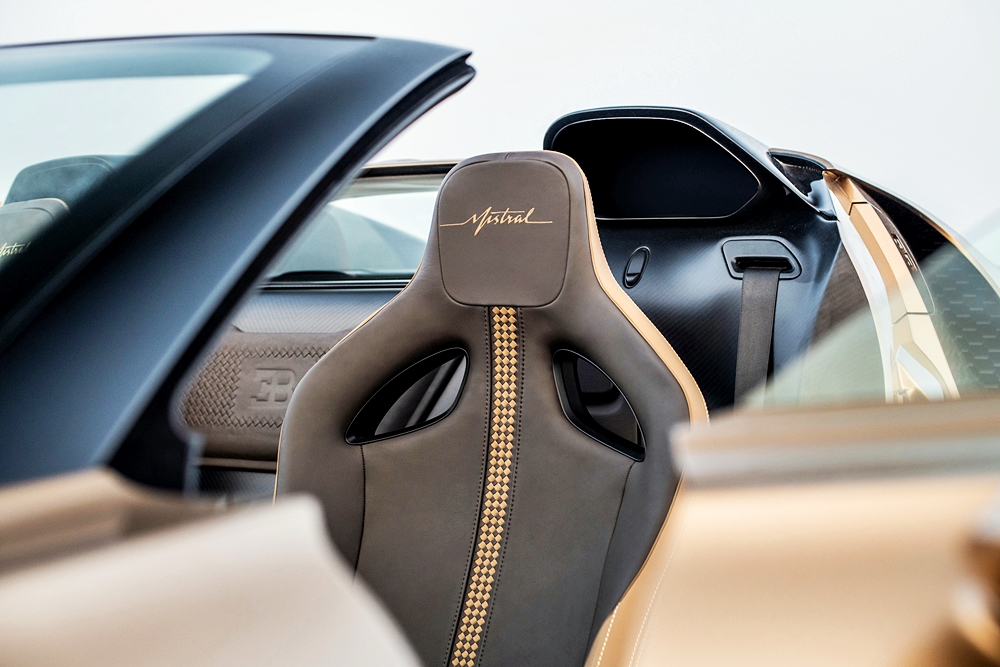 Bugatti menggunakan bahan komposit ringan prestasi ultra-tinggi dan struktur rumit bagi meminimumkan berat dan pada masa sama meningkatkan ketegaran casis. Pendekatan itu turut diguna pada pintu W16 Mistral yang menjadi subjek tumpuan ketika pembangunan.