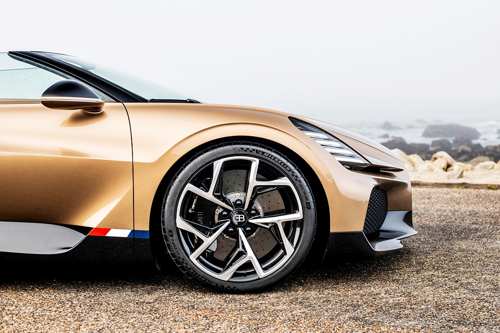Setiap sauk dibuat daripada struktur gentian karbon buatan khas yang mampu menyokong keseluruhan berat kereta jika terbalik. Bentangan salur udara tersebut turut memeriahkan lagi orkestra dimainkan enjin 8.0L W16.