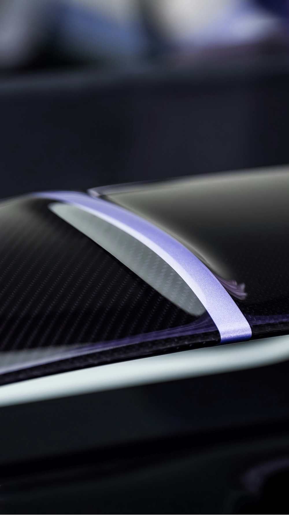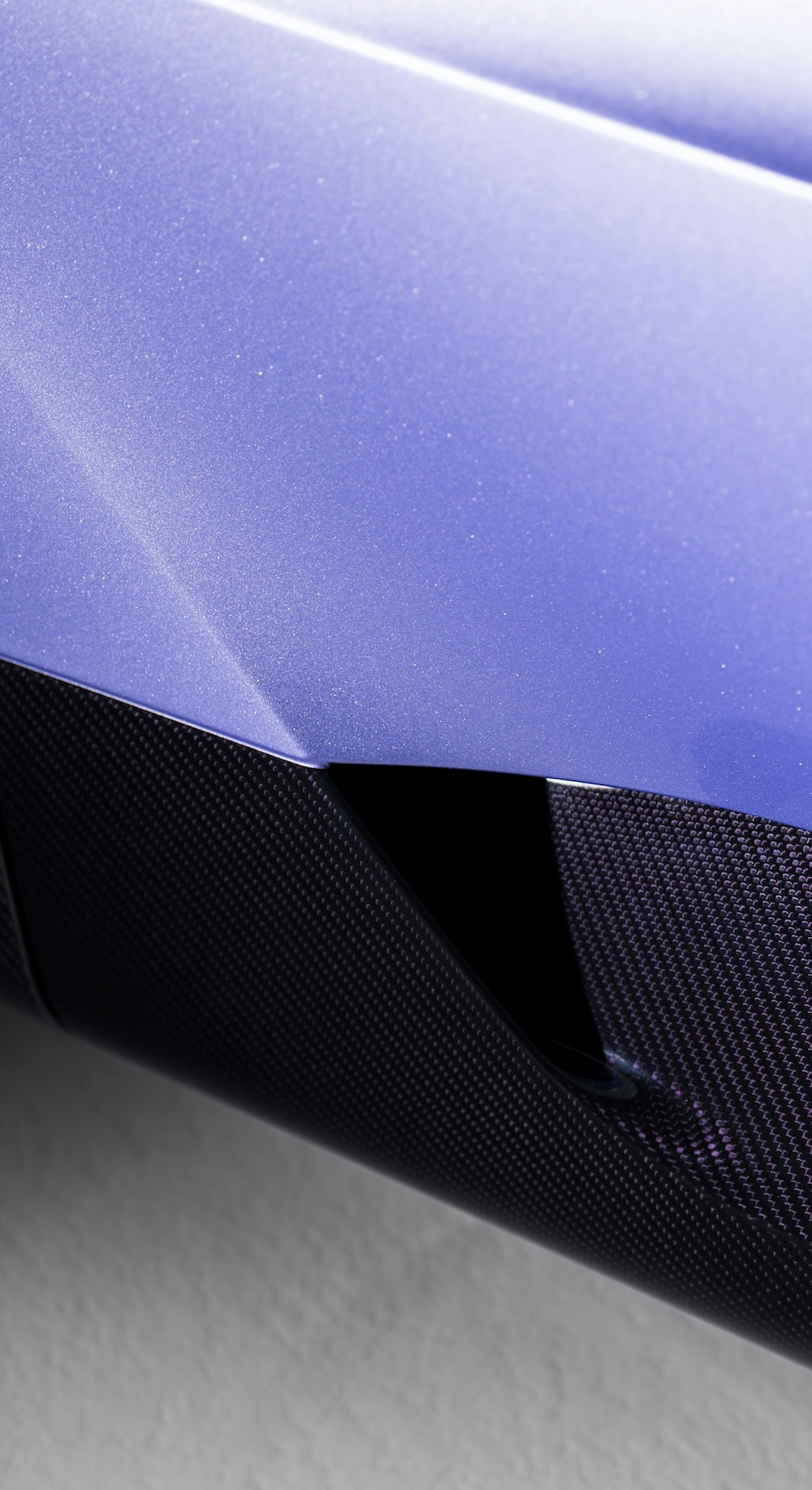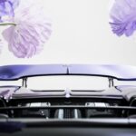 Bahagian bawah badan kereta menggunakan kemasan Violet Carbon exposed weave, memberikan kontras yang dramatik dengan warna badan utama. Paling mencuri perhatian ialah bahagian spoiler belakang retractable yang dijadikan kanvas lukisan tangan dengan motif bunga lilac dan iris.