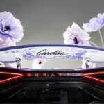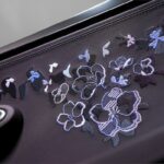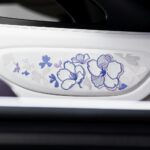 bersama aksen violet dan panel karbon. Bahagian headrest menerima sulaman bunga yang dibuat secara manual menggunakan ribuan benang, manakala panel pintu menampilkan corak kelopak bunga seolah-olah ditiup angin.