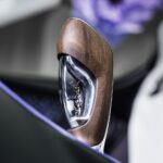 Di bahagian gear selector pula, ikon ‘Dancing Elephant’ rekaan Rembrandt Bugatti ditempatkan dalam kaca berwarna violet, menghubungkan warisan seni jenama dengan sentuhan moden.