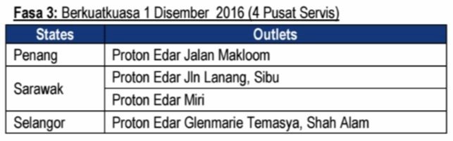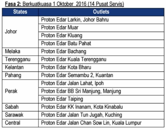 Sementara itu, Proton akan menambah lagi 14 lagi pusat servis mulai 1 Oktober dan empat lagi cawangan pada 1 Disember 2016.