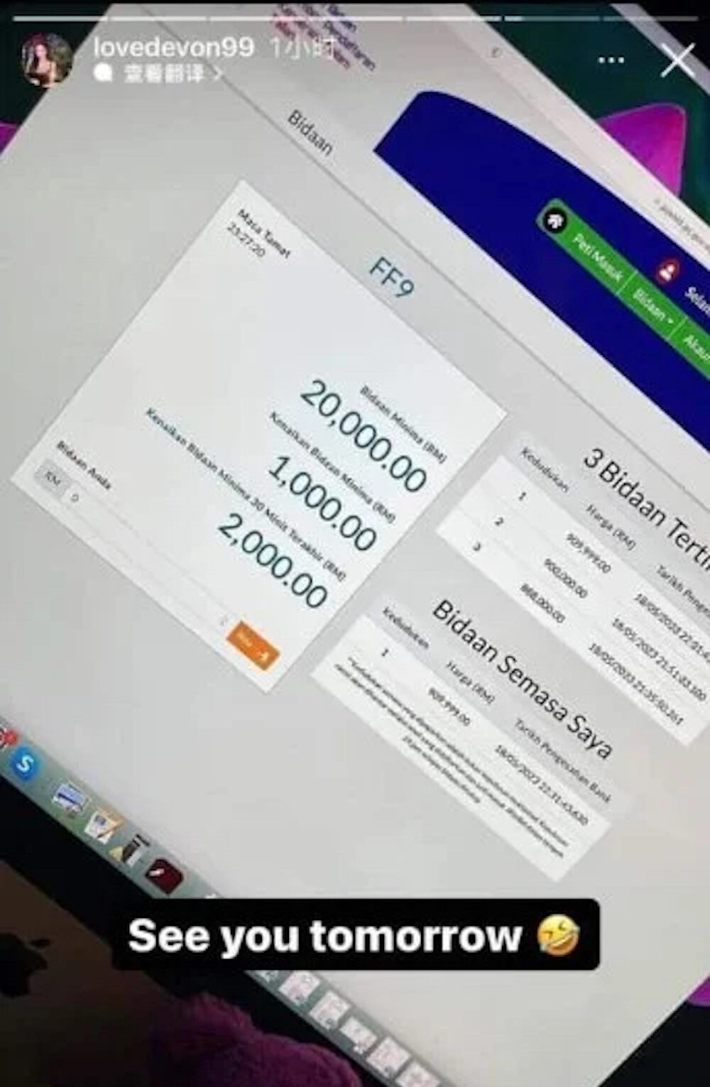 Laporan itu turut menyatakan Ivon pernah menceritakan impian memiliki nombor tersebut dalam perkongsian di Instagram dengan tangkap layar bidaan dibuat untuk nombor pendaftaran FF9.