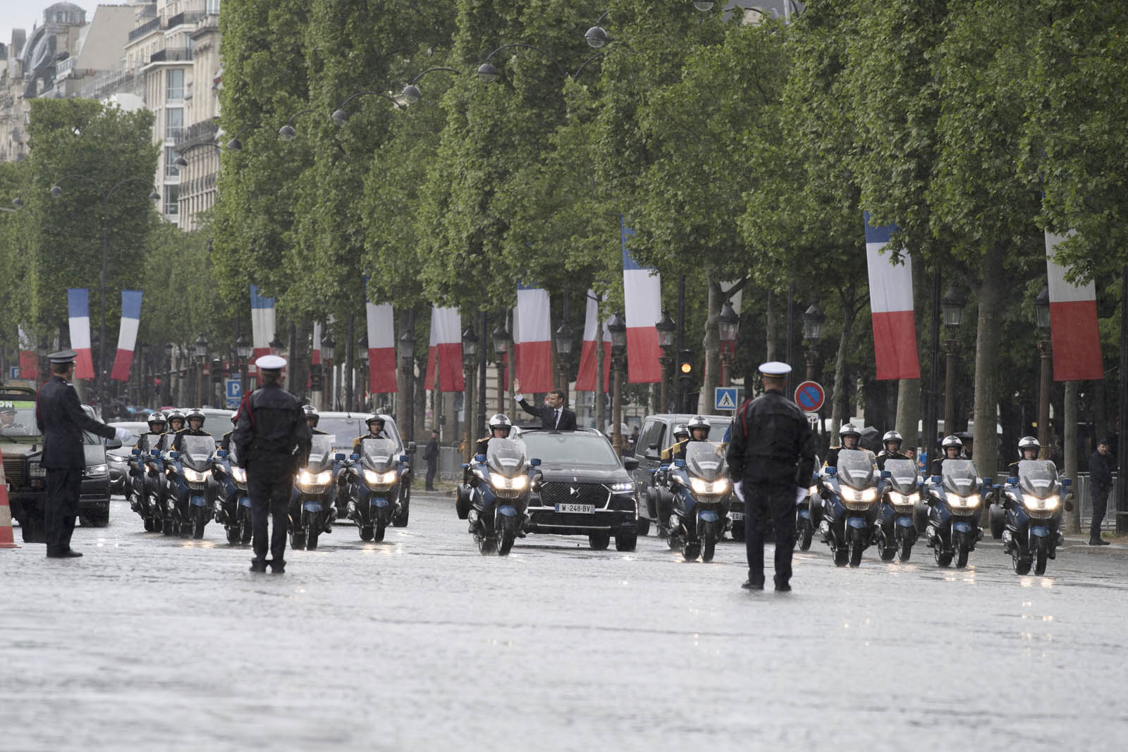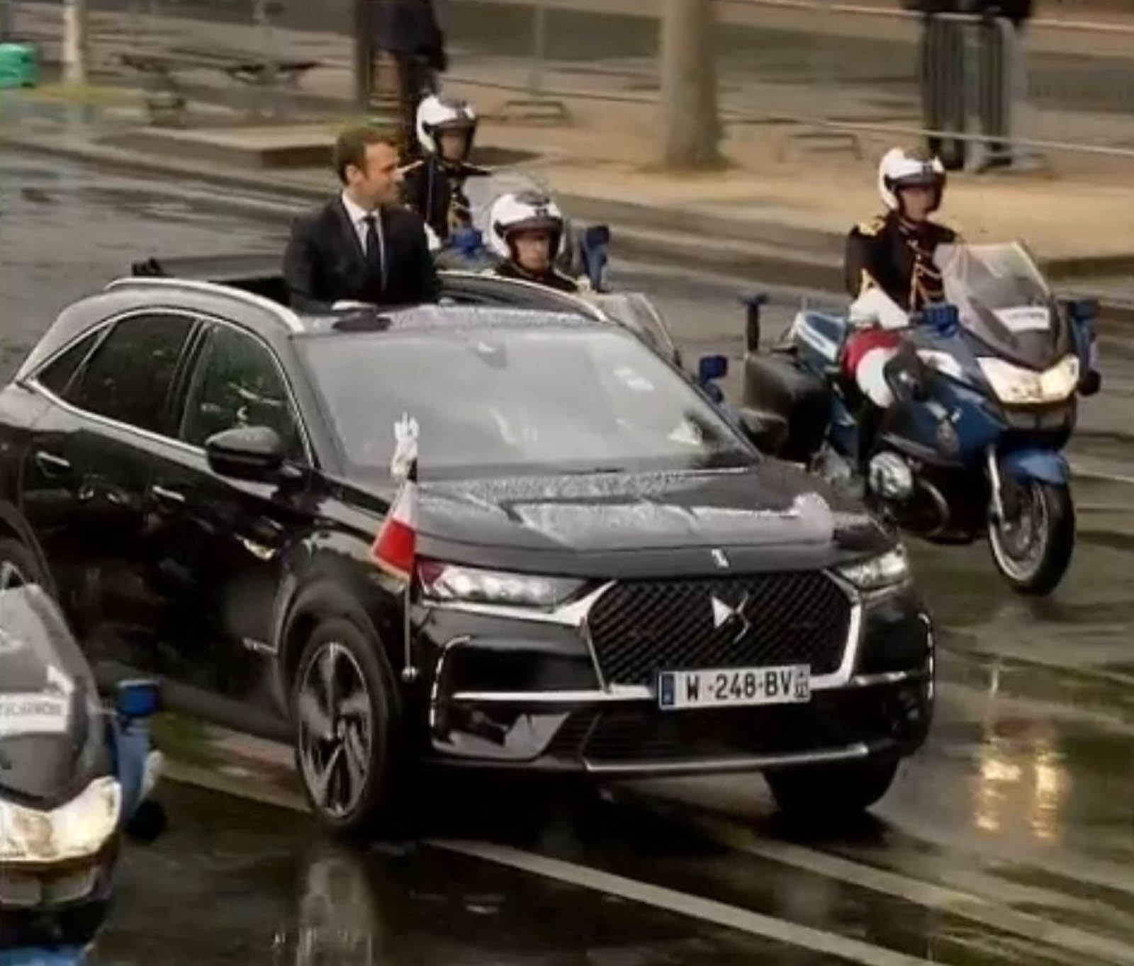 Jadi, tiada masalah untuk Presiden Macron melambai tangan kepada rakyat Perancis dan penyokongnya ketika dibawa berarak sepanjang laluan Champs-Elysées walaupun hujan.