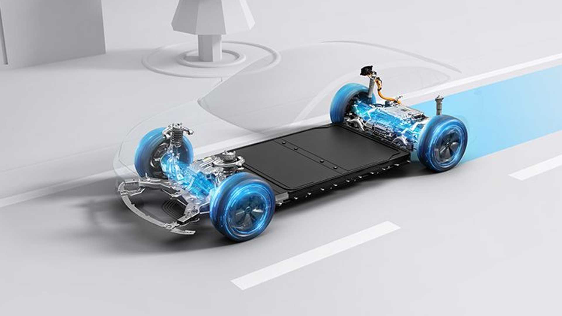 - Menggunakan sistem pacuan semua roda (AWD) dengan dua unit motor elektrik.