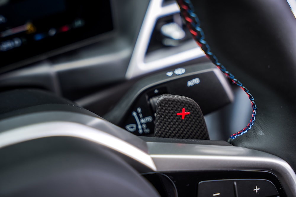 - Kit badan M Performance seperti spoiler belakang, sambungan skirt sisi, perehat tangan M balutan Alcantara dan tuil gear M Performance jenis gentian karbon.
