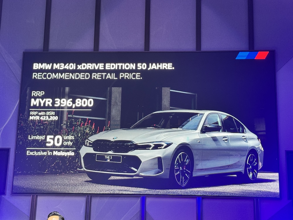 BMW M340i xDrive Edition 50 Jahre ditawarkan pada harga RM396,800 tetapi jumlah disediakan terhad 50 unit untuk pasaran tempatan.