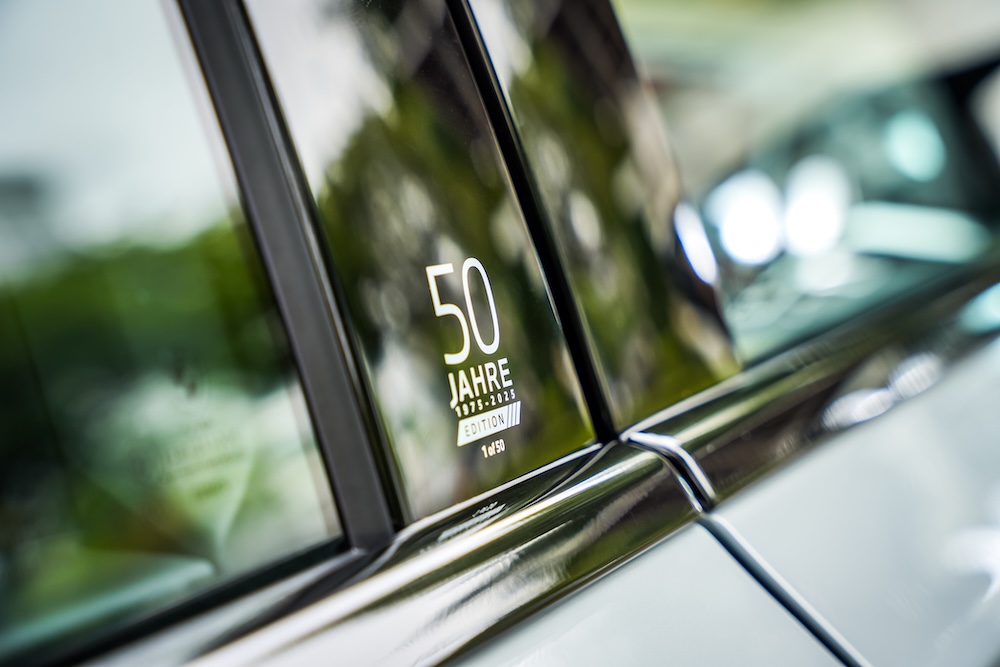 - Ada lambang Jahre Edition di bahagian pilar-B dan lencana berbentuk plak di tempat pemegang cawan.