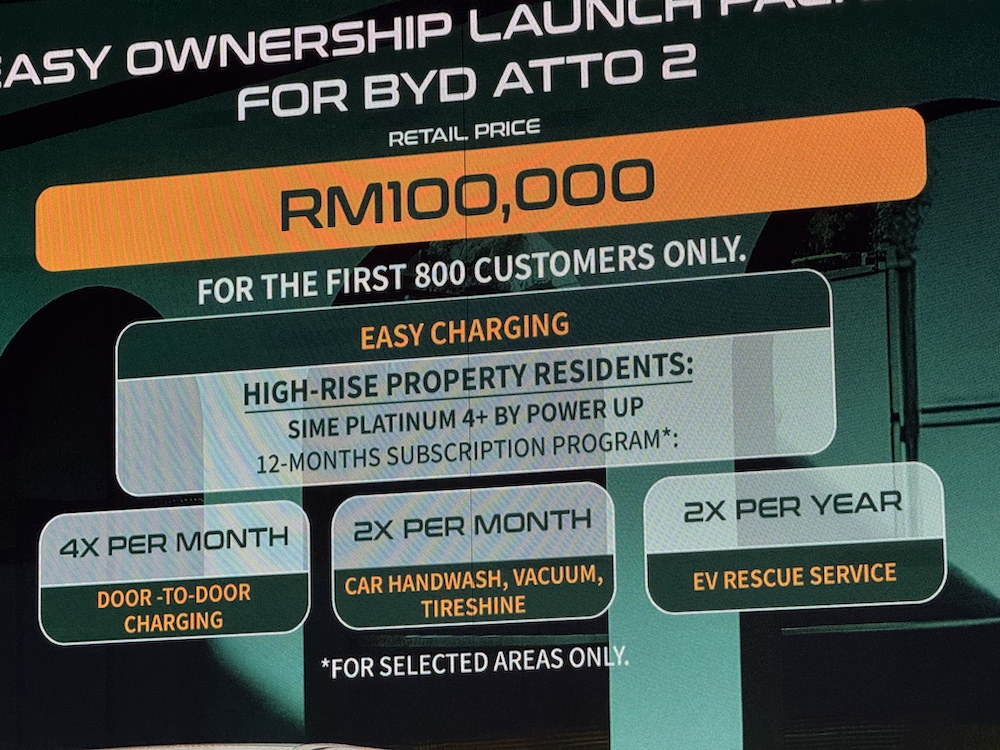 BYD Sime Motors turut menawarkan pakej istimewa kepada 800 pembeli BYD Atto 2 pertama berupa: