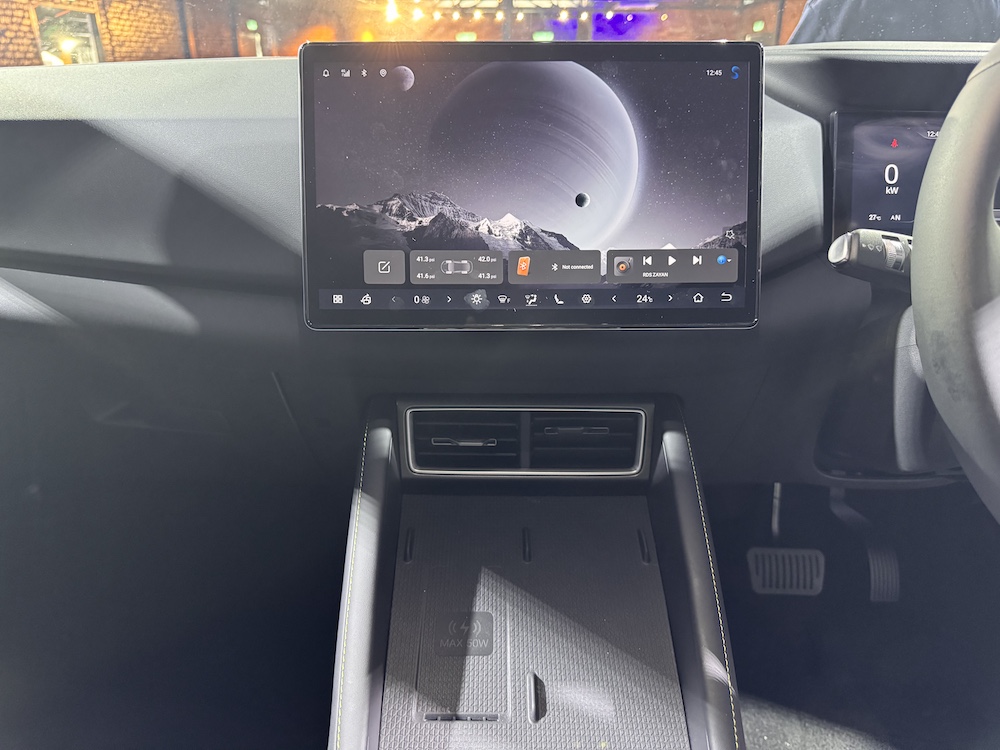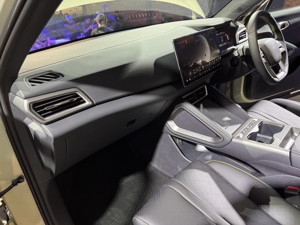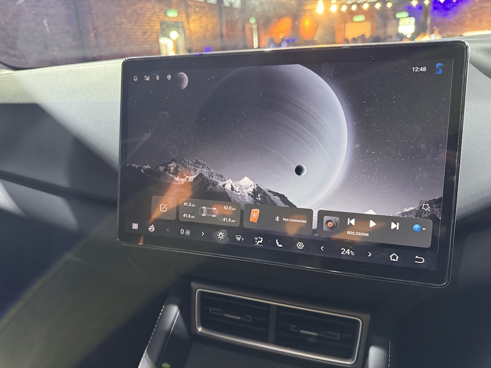 Menjengah ruang kabin, penumpang disambut unit infotainment skrin sentuh 12.8 inci berputar, lengkap dengan konektiviti Apple CarPlay dan Android Auto wayarles.