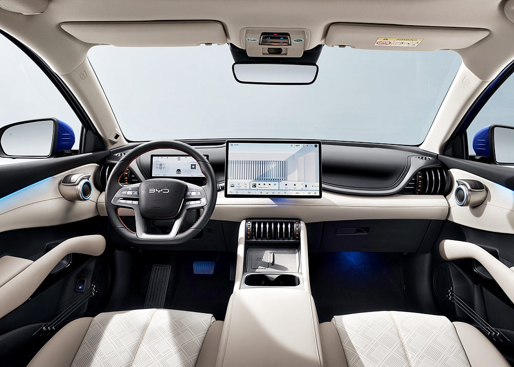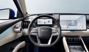Kabin ATTO 3 EVO dilengkapi sistem infotaimen skrin sentuh 15.6 inci yang terbesar dalam segmennya. Sistem ini menyepadukan fungsi Google termasuk Google Maps, Google Play Store dan Google Assistant.