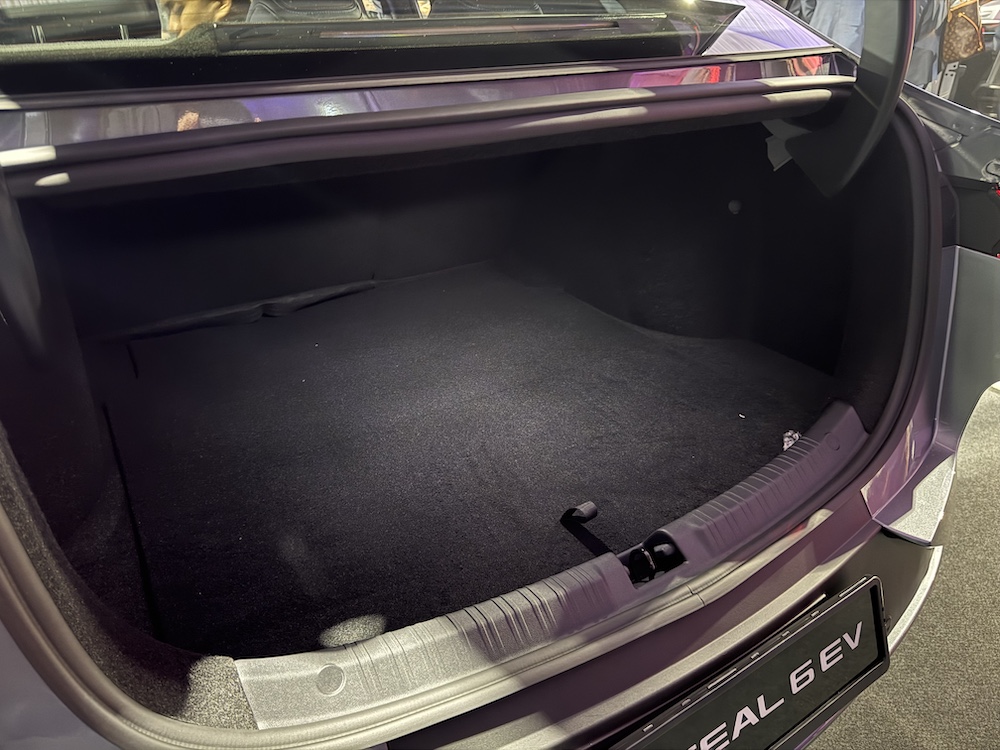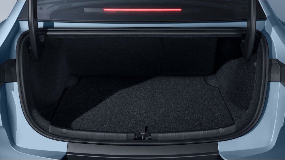 Ruang but menawarkan kapasiti muatan gabungan 525 liter, iaitu (but 460 liter, dan bonet 65 liter bonet), antara terbesar dalam kelas sedan elektrik segmen-C.