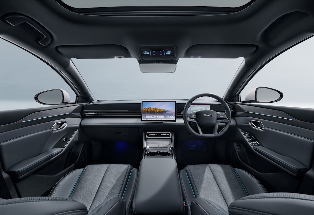 Kluster instrumen depan pemandu digital 8.8 inci dipadukan dengan sistem audio enam pembesar suara (Dynamic) atau lapan pembesar suara (Premium). Sokongan Kunci Bluetooth, Kunci Digital BYD, pengecas wayarles (Premium) dan 24 ruang storan pintar melengkapkan praktikaliti sedan berkenaan.