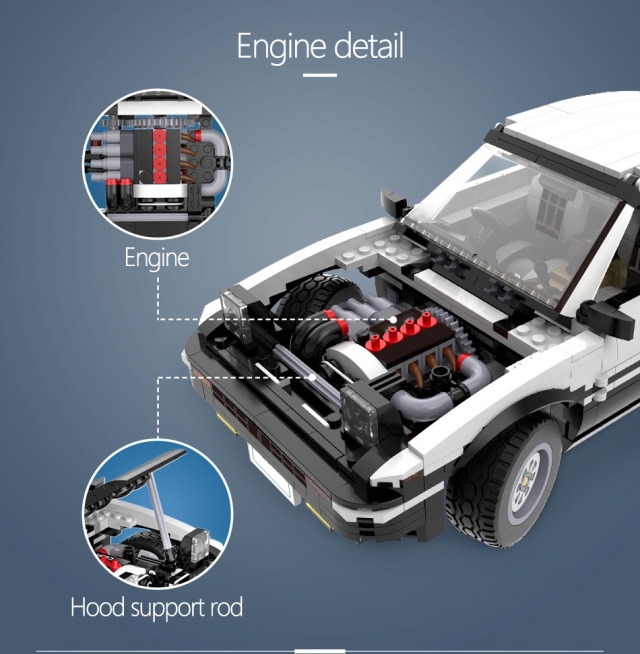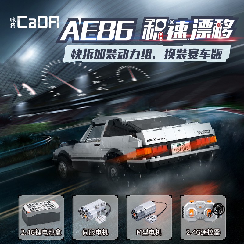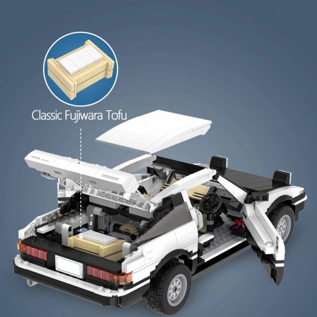 Walaupun bongkah plastik kecil yang membentuk AE86 itu nampak seperti produk LEGO asli, tetapi ia sebenarnya buatan CaDA. Secara jelas, itu bukan model rawak Toyota Sprinter Trueno, tetapi benar-benar kereta yang dipandu Takumi ketika melakukan drift dalam Initial D.
