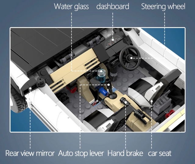 Perincian kualiti blok yang digunakan mirip seperti produk dewasa, LEGO Technics seperti panem pembukaan, pautan stereng yang boleh berpusing dan suspensi roda belakang yang tertulis non-independent, sama seperti kereta sebenar.