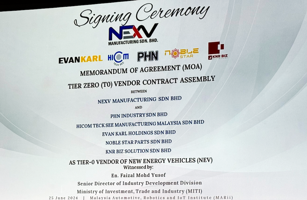MoU itu bertujuan mengukuhkan kerjasama antara kedua-dua syarikat berhubung aktiviti pemasangan kenderaan secara tempatan (CKD), iaitu NMSB menyediakan fasiliti, manakala CADB pula bertanggungjawab berhubung pemasaran serta pengedaran kenderaan EV itu.