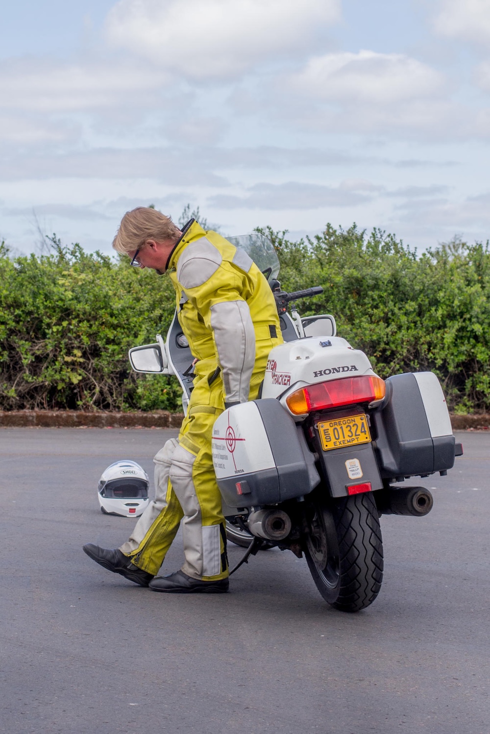 - Jika posisi terlalu sukar atau motosikal terlalu berat, minta bantuan.