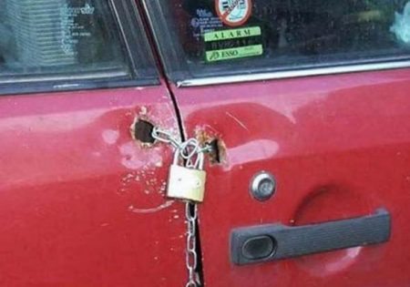 Mungkin anda tahu di mana boleh beli kunci stereng seperti ini. Tapi kenalah ingat kata laluan. Sekali terlupa, bersiap sedialah dengan gergaji besi.