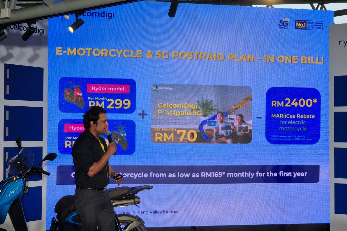 TELCO terkemuka, CelcomDigi Berhad (CelcomDigi) dan Yinson GreenTech hari ini mengumumkan kerjasama untuk menawarkan peluang pemilikan motosikal elektrik (EV) kepada rakyat Malaysia menerusi langganan pelan pascabayar CelcomDigi. Pelanggan kini boleh memajak untuk memiliki e-motosikal rydeEV hanya dengan mendaftar untuk mana-mana pelan CelcomDigi pascabayar 5G dengan pelan ansuran Easy 360.