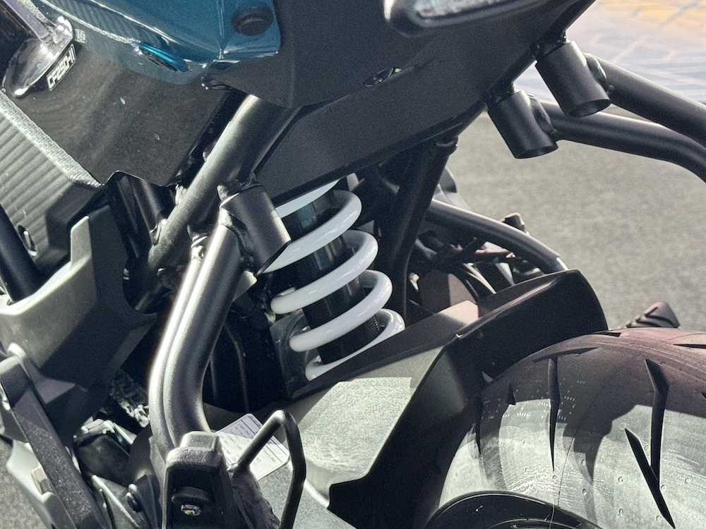 • Sistem suspensi fork teleskopik konvensional 37mm di depan, dan monoshock (belakang).