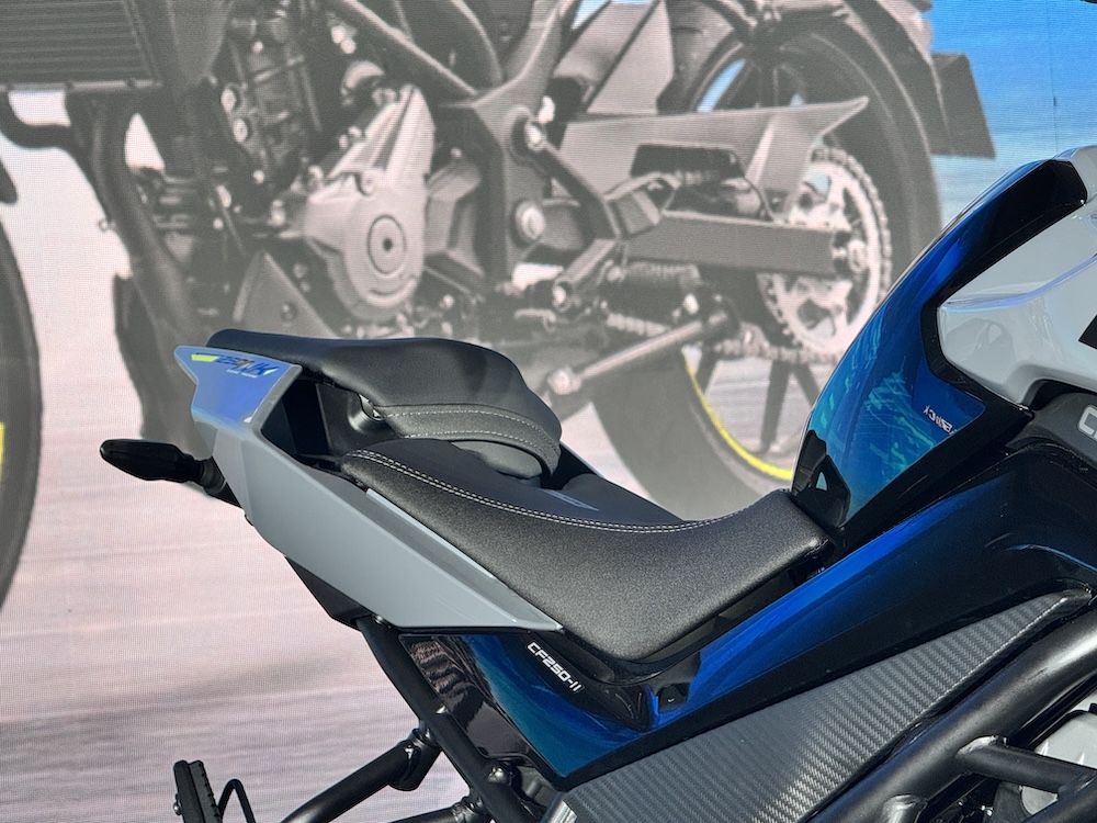 - Menggunakan konsep rekabentuk versi kedua CFMoto V.02 NK yang mengetengahkan gaya lebih sporty berbanding model generasi pertama.
